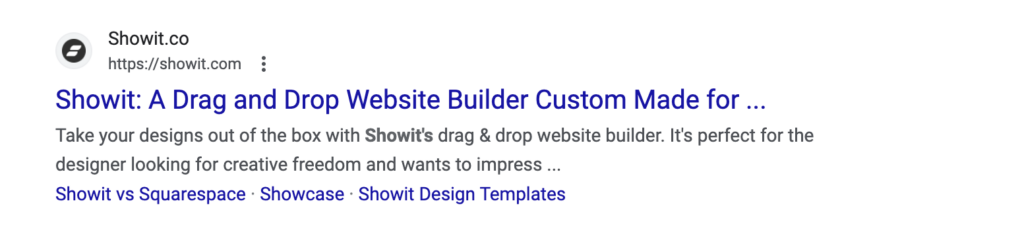 Here’s how those 2 elements of metadata show up when you Google Showit: